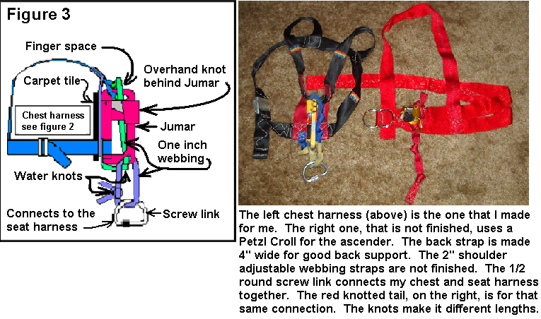 work requires that the seat harness be connected to the chest harness for safety. (See CHEST TO SEAT CONNECTION.) I use two-inch webbing for all of my