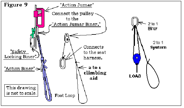 climb with a heavy pack that is attached to your seat harness. (See Figure 9.) From your extra items, clip the pulley onto