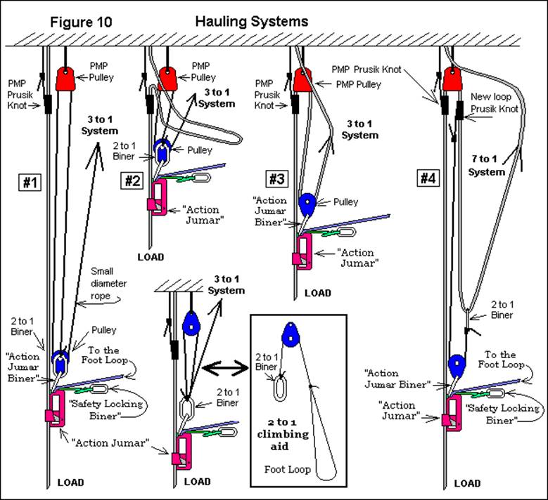 we will assume that you are to haul up someone who is on the loaded rope. Systems #1 through #3 are illustrated in the