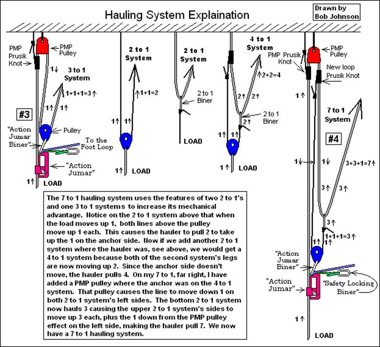 technique to raise a loaded rope using my "2 to 1 climbing aid". Systems #1 through #4 use a PMP, Prusik